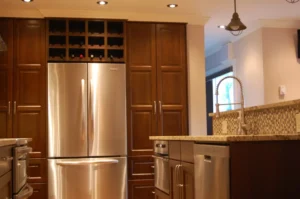 Before installing their IKEA kitchen we realized that to maximize space we needed to remove the wall that separated their kitchen from the living room and dining room. For this project IKAN took on the role as general contractor and oversaw a complete kitchen renovation which included removing walls, recessing the fridge and pantry space, adding trim and even refinishing their hardwood floors.