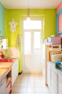 Certainly a bold choice, but the bright colour worked with their all white, IKEA ABSTRAKT cabinetry, quartz counters and the mid-century vibe of their home. We love that they took a risk by painting their kitchen such a vibrant colour.Today on Design Sponge they are talking about lime green walls and we can’t help but think our clients Shelley & Kelly’s kitchen should have made the list too for their bold, fashion-forward kitchen paint choice.
